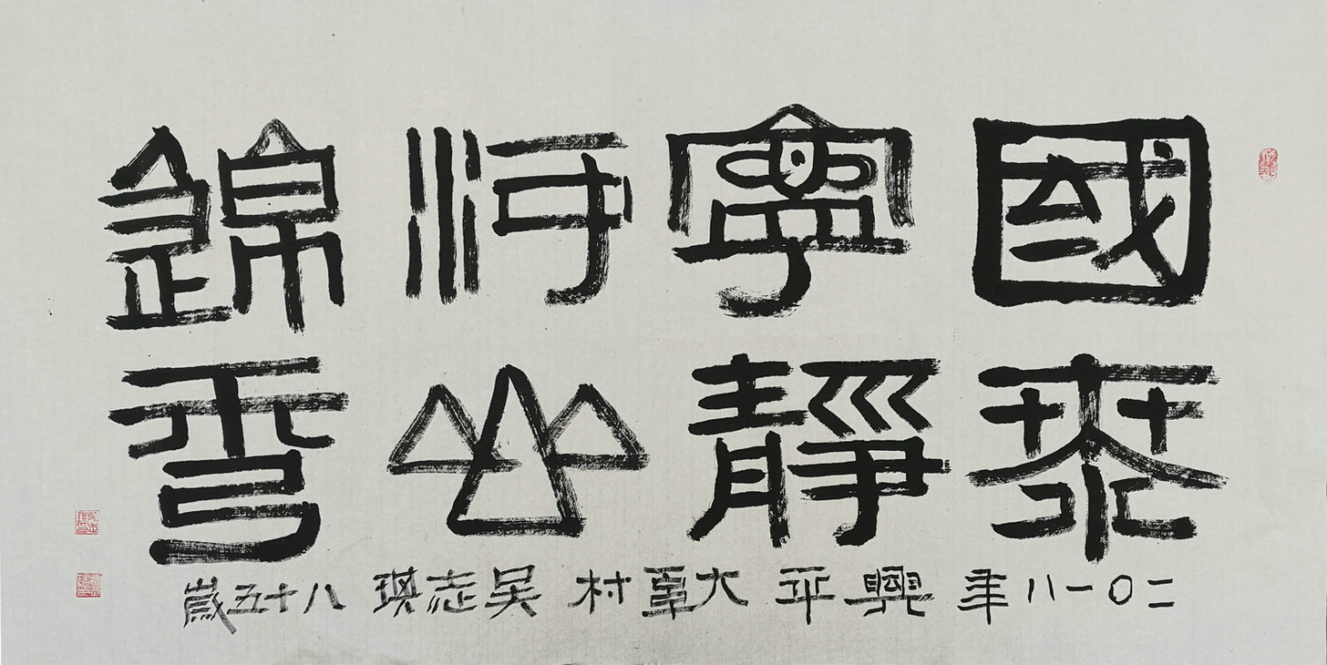 著名書畫收藏鑒賞家、書法理論家楊普義說:吳志琪老師是一位文化藝術的唯美主義者,他恪守“擁書自雄,以墨養心”信念,讀懂了魏晉風骨,又遍覽唐宋以來的前賢墨寶,直追藝術大道;書體出于漢隸,骨氣勁峭,法度謹嚴,于平正中見險絕,于規矩中見飄逸,筆畫穿插,安排妥貼。書法“雄強豪邁、率真俊逸,質樸渾厚、大氣磅礴。”點畫結體有初荷出水之嬌羞,承轉照應有嘉木交柯之蔥茂。其作品“謹嚴勁健,心摹手追,法明理通,很是精絕”。他幾十年如一日孜孜不倦,在書法領域獨領風騷,逐漸形成了自己“結構奇美、筆力勁辣、瀟灑出塵、不落俗套”的藝術風格。