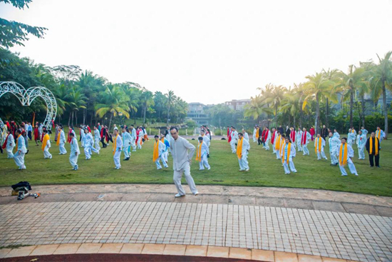 按照慣例,大部分嘉賓都已于會(huì)議前一日到達(dá),只為不錯(cuò)過(guò)集體晨練太極拳的時(shí)間。新年第一天,早上6點(diǎn)半,大家準(zhǔn)時(shí)赴會(huì),在和太極大家族里,太極是根、太極是魂、太極是文明!每個(gè)人都必須是身有太極“加持”的太極人, 迎著早晨第一縷陽(yáng)光, 打 一套自然舒展的太極拳, 頓感 神清氣爽,精神抖擻 。
