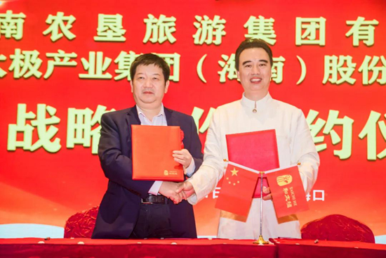 海南農(nóng)墾旅游集團(tuán)有限公司董事長(zhǎng)石向榮先生與和太極產(chǎn)業(yè)集團(tuán) ( 海南)股份有限公司董事局主席何俊龍先生共同簽署戰(zhàn)略合作協(xié)議。