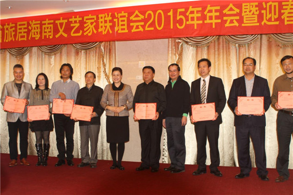 海南省旅居海南文藝家聯誼會2015年年會暨迎春團拜會2月2日下午在海南迎賓館召開。按照中央文化體制改革和發展領導小組辦公室主任、中宣部副部長孫志軍提出新一輪文化體制改革的最大特點是突出協調推進的要求,在改革的目標思路上,注重與其他各領域改革的統籌協調,比如與經濟體制改革銜接要加強文化市場體系建設,與行政管理體制改革銜接要完善文化管理體制,與社會體制改革銜接要推進公益性文化事業發展背景下。以及海南省委宣傳部、省文聯在用好體制內人才力量的基礎上和落實《海南省深化文化體制改革實施方案》工作,充分挖掘體制外人才力量資源,團結招攬凝聚八方英才,推動海南文化大發展大繁榮背景下。通過選舉產生了新一屆會長、副會長、秘書長、副秘書長和名譽會長。徐守振當選為會長,馬良、劉培軍、楊寧、周仕華、唐闊、程連仲當選為副會長,周仕華、王艷分別擔任秘書長和副秘書長,李福順當選為名譽會長。旅居海南文藝家聯誼會于2010年1月19日在海南省委宣傳部、省文聯牽頭組織領導下成立,該聯誼會目前已經登記在冊的有100多位藝術家。