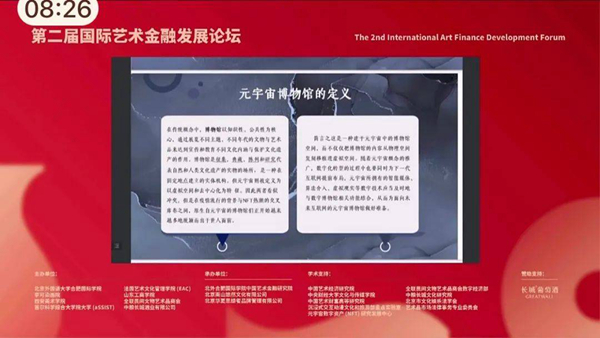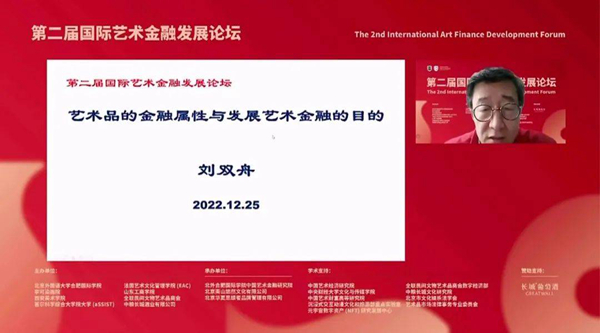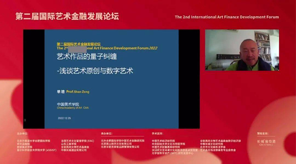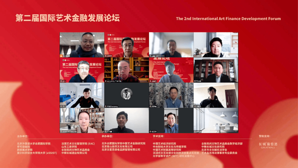 2022年12月25日,由北京外國語大學合肥國際學院、李可染畫院、西安美術學院、首爾科學綜合大學院大學、法國藝術文化管理學院、山東工商學院、全聯民間文物藝術品商會、中糧長城酒業有限公司聯合主辦;北外合肥國際學院中國藝術金融研究院、北京南山悠然文化有限公司、北京華夏思想者品牌管理有限公司聯合承辦;中國藝術經濟研究院、中央財經大學文化與傳媒學院、中國藝術財富高等研究院、沉浸式交互動漫文化和旅游部重點實驗室、元宇宙數字資產(NFT)研究發展中心、全聯民間文物藝術品商會數字經濟部、中糧長城文化研究院、北京市文化娛樂法學會藝術品市場法律事務專業委員會學術支持,中糧長城葡萄酒贊助支持的“第二屆國際藝術金融發展論壇”在李可染畫院學術報告廳以及線上會場同步成功舉辦。