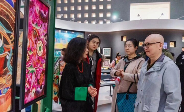 (參加第八屆中國藝術金融年會的專家學者調研敦煌博物館范燕燕絲綢藝術中心)
