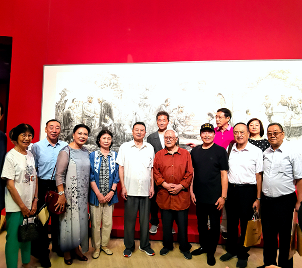 策展人王茜女士透露,“脊梁——趙志田中國畫作品展”,旨在呈現(xiàn)畫家在藝術(shù)創(chuàng)造中勇于擔(dān)當(dāng)、敢為人先的守正創(chuàng)新和對民族精神的堅守,中國美術(shù)館中心展廳展覽體現(xiàn)著中國畫家群體鏈接藝術(shù)史文脈與獨標(biāo)一格的學(xué)術(shù)成果匯演。本次畫展的意義還在于大型主題創(chuàng)作中的史詩性文獻,畫家代表作《大慶工人無冬天》、《烽火太行》、《百聽不厭是鄉(xiāng)音》等在藝術(shù)史脈絡(luò)中展露的革命理想高于天的時代精神與革命樂觀主義精神依然在不斷迸發(fā)力量,為了這種精神的傳遞,畫展期間組委會特別邀請周恩來總理侄子周秉和先生,開國大將張云逸將軍之孫張曉健先生,開國上將楊至誠將軍之子楊珠江先生,開國上將李天佑將軍之子李亞濱先生及夫人饒立群女士,開國上將鄧華將軍之女鄧英女士,開國將軍邊疆之子邊小兵先生等嘉賓來到開幕式。多樣性的展覽、交流、研討、互動創(chuàng)造性地達到了一種經(jīng)典藝術(shù)走進社會大眾生活的時代洪流與能量。口碑相傳的藝術(shù)經(jīng)典一定是持久的,散發(fā)著人性的溫暖和精神力量的。這也是“脊梁——趙志田中國畫作品展”帶給全國人民不尋常藝術(shù)感受的精神特質(zhì)——不忘初心、砥礪奮進。