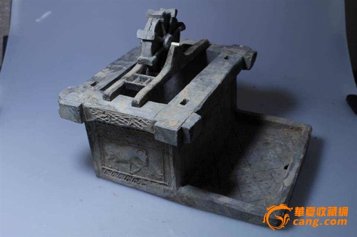 常見陶井多為圓筒形,此陶井為方形井實為少數(shù)罕見形制。陶井帶有井欄、井架、井亭、滑輪等附件。井壁和滑輪或飾有精美的雕刻紋飾,反映了漢代先進的制陶造型技術。