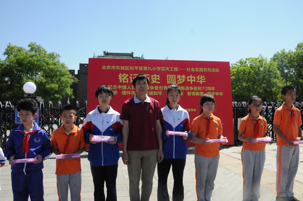 活動儀式上,東城區和平里第九小學校長單寧先生、燕京書畫社社長、著名書畫家張原先生先后致辭,表達了中國人民以史為鑒、不忘歷史的崇高熱情;中小學生代表分別在團旗和少先隊旗下宣誓展現努力學習、報效祖國的愛國情懷。本次活動的策劃者鑒石雜志社社長李曉坤告訴記者,通過本次活動,意在進一步加強廣大青少年學生的愛國主義和社會主義核心價值觀的教育,為實現偉大復興的中國夢添磚加瓦。全國政協委員、原武警部隊副司令員、中華炎黃文化研究會副會長劉紅軍中將對本次活動給予了高度評價。