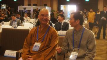在會議現場汪成瓊所長向中國宗教界和平委員會秘書長、中國佛教協會會長學誠大和尚介紹紫砂藝術與佛教文化的淵源;會議期間紫砂藝術吸引了與會各國代表們的關注。