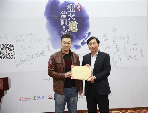 中美協青年畫家李振(左)與大道文化總經理王運杰先生在聘請儀式上