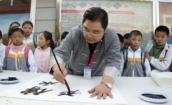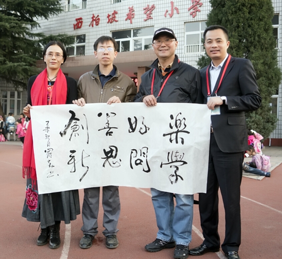 活動期間,活動組委會不僅組織知名書畫家一行實地參觀了西柏坡紀念館、七屆二中全會會址等中共中央舊址等紅色景點,還來到西柏坡希望小學開展了特色文化援建活動,為學校老師和學生書寫校風、校訓等,還為學校捐贈了籃球、書包、文具盒、鉛筆、橡皮等學習和體育用品。老師和同學們被這種獨特而新奇的援建方式所吸引,并與書畫家們合影留念。