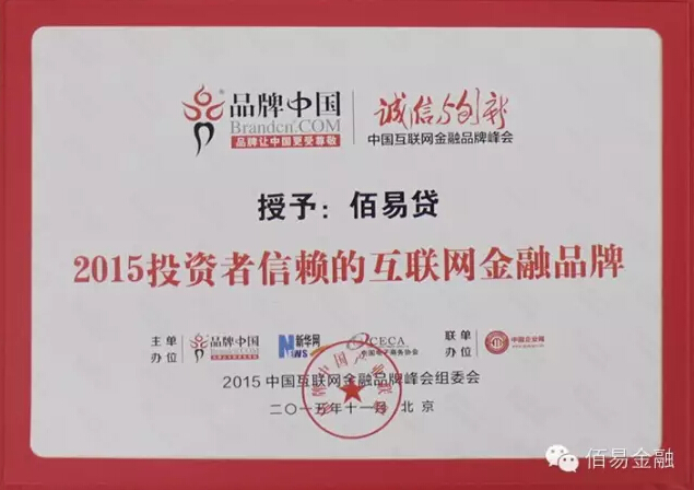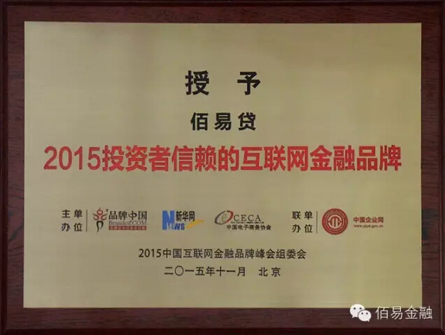 佰易金融榮獲“2015投資者信賴的互聯(lián)網(wǎng)金融品牌”