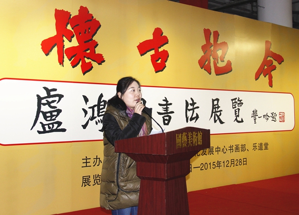 2015年12月26日,由至德企業文化發展中心書畫部、樂道堂主辦的“懷古抱今——盧鴻鋼書法展”在中國書法展覽館舉行。中國非物質文化遺產保護協會常務副秘書長華慶,至德企業文化發展中心常務副秘書長季媛,中國非遺資源管理評價研究委員會執行副主任黃中等書畫界、商界、媒體界共三百余人出席了展覽開幕式。