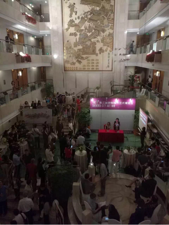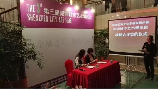 現今中國超過美國成為世界上第一大藝術品市場,全球市場份額占比超過30%。預計2015年我國人均GDP將超8200美元,這意味著中國藝術品投資時代的大幕正式拉開。深圳市中創藝文化發展有限公司作為深圳城市藝術博覽會的總策劃與主辦方,vip預展當晚與深圳前海創客企業家俱樂部舉行隆重的簽約儀式,旨在共同開拓中國藝術市場新格局。湖北商會、山東商會、潮汕商會、中國銀行、中國工商銀行、匯豐銀行等金融、企業界投資家以及文化藝術行業收藏家歡聚一堂。在獨立開放而又充滿藝術氛圍的場合空間下,共同交流,深圳商報、深圳都市頻道第一現場、深圳晚報、中國文化傳媒、香港商報等記者媒體當天也爭相來訪報道。