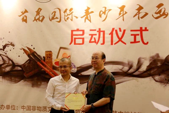 為了弘揚中國傳統文化,促進書畫藝術傳承,促進世界青少年兒童文化藝術交流,選拔和培養優秀書畫藝術人才,由中國非物質文化遺產戰略發展聯盟、韓中地域經濟協會主辦,北京盛燦文化傳播有限公司、龍仕藝道(北京)文化發展有限責任公司承辦、南南美術、中國普洱茶協會、炎黃藝術家協會協辦的傳承者杯首屆國際青少年書畫大賽(以下稱“書畫大賽”)啟動儀式于2016年6月28日在北京太廟隆重舉行。