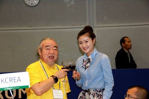 韓國國會議員在中日韓論壇上親切接見趙秋萍