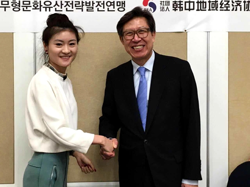 趙秋萍女士在中韓非遺高峰論壇及第十一屆濟州論壇期間不遺余力和國際政要、企業家,文化機構交流與洽商,先后代表深圳廣田與韓中地域經濟協會,中韓非遺高峰論壇組委會,共好匯、炎黃書畫家協會等機構達成戰略合作協議,經過中韓非遺高峰論壇組委會專家委員會綜合評價舉薦,大韓民國國會秘書長樸亨峻為趙秋萍女士頒發了由本人親筆簽名的中韓文化交流大使證書。趙秋萍認為,中韓乃至世界各國的文化合作,應當在尊重各國國情多樣性和經濟發展不平衡現實的前提下,遵循平等互利、循序漸進、注重實效的原則,互惠與共贏應成為各經濟體共同追尋的目標。