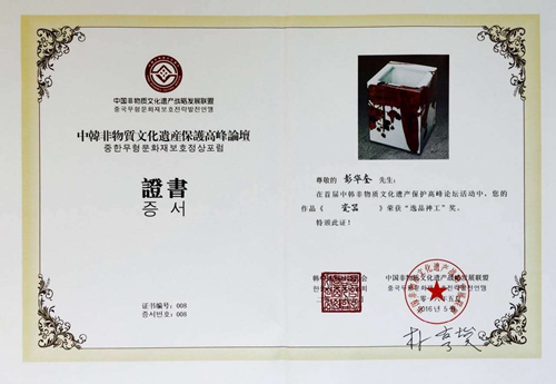 在此我謹(jǐn)代表中方的專家學(xué)者,藝術(shù)家、企業(yè)家向促成這次“中韓非物質(zhì)文化遺產(chǎn)保護(hù)高峰論壇暨逸品神工藝術(shù)精品展”活動的中韓雙方的組織者們表示由衷的感謝和崇高的敬意!同時對韓國名匠們的到來表示熱烈的歡迎和深深的謝意!