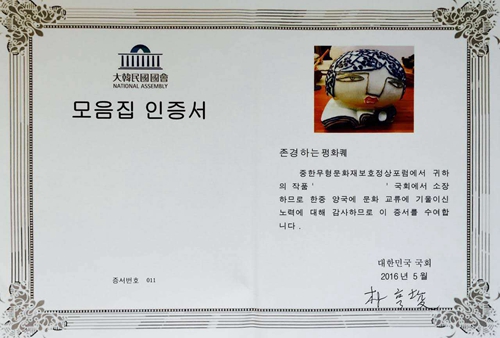 華奎大師瓷藝勤勞智慧中國娃被大韓民國國會收藏