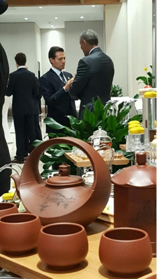 除了張藝謀美輪美奐的《最憶是杭州》讓世界感到驚艷,還有中國紫砂文化也在杭州G20閃耀亮相,“中國紫砂文化大使”——紫砂藝術家汪成瓊先生,作為本次杭州G20領導人專用紫砂壺指定藝術家,由他創作出的《紫韻東方·日月同輝》可謂匠心獨運,作品圍繞杭州人心頭最柔軟的一汪盈盈碧水——西湖,將千年等一回那種最動人的美學元素融入紫砂壺創作之中,各國領導人在茶歇之余,感受中國紫砂韻味與世界文化的交融與對話。