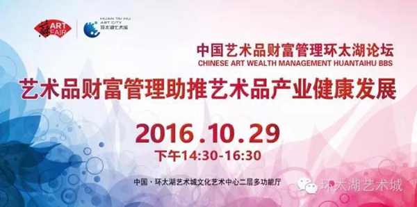 在常州市人民政府、江蘇省文化廳的指導下,中國文化產業智庫研究中心、江蘇省第二屆(國際)藝術品博覽會組委會主辦,江蘇省藝術品行業協會、江蘇環太湖文化藝術城有限公司承辦的中國藝術品財富管理環太湖論壇將于2016年10月29日下午14:30-16:30在中國•環太湖藝術城開幕。