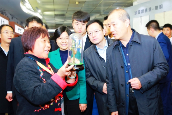 隨后,李偉部長又重點關注了通州味道及宋莊藝術區展示區域,饒有興致的參觀來自通州本土的20余家文創企業的文創產品及衍生品,并不時與參展企業交流。