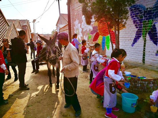 第一批美術小天使共計九人,最大年齡十二歲,最小年齡只有兩歲。美術小天使們到武家莊的創作活動受到各級相關領導的高度關心和重視。同時受到村委會、項目指揮部和村民們的熱烈歡迎和熱情接待。冬奧藝術城 . 武家莊項目指揮部總指揮羅麗博士首先帶領大家參觀考察了正在改造建設的街區農戶和老舊窯洞,詳細介紹了武家莊的過去現在和未來。小天使、家長、老師們聽的津津有味。個別家長還表示愿意投資共同參與改造建設。