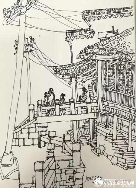 這次寫生教學,我要求學員通過觀察抓住西塘水鄉建筑的主要特點,比如灰色屋面的高低錯落和形狀的不同變化,高大的馬頭墻與人字形屋面的強烈對比,河道也不再是北方的婉轉,而是被建筑投影切割成一排長短不一的直線,老式電桿和錯綜繁雜的電纜線所形成的空間變化等等一切的西塘元素無一不能入畫!