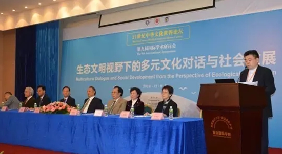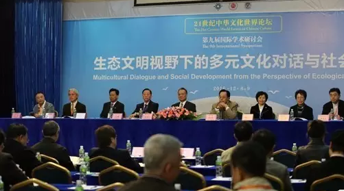 二十一世紀(jì)中華文化世界論壇,是由中華炎黃文化研究會(huì)于2000年發(fā)起的,至今年已連續(xù)舉辦九屆。這次研討會(huì)由中華炎黃文化研究會(huì)、北京外國語大學(xué)、“北京師范大學(xué)-香港浸會(huì)大學(xué)聯(lián)合國際學(xué)院”共同主辦。研討會(huì)是在全國生態(tài)文明建設(shè)工作推進(jìn)會(huì)議剛剛召開的背景下舉行的。習(xí)近平主席和李克強(qiáng)總理對上述會(huì)議作出重要指示,強(qiáng)調(diào)生態(tài)文明建設(shè)是我國“五位一體”總體布局和“四個(gè)全面”戰(zhàn)略布局的重要內(nèi)容。要切實(shí)貫徹新發(fā)展理念,樹立“綠水青山就是金山銀山”的強(qiáng)烈意識(shí),努力走向社會(huì)主義生態(tài)文明新時(shí)代。因此這次學(xué)術(shù)研討會(huì)不僅具有理論意義,更具有重要現(xiàn)實(shí)意義。