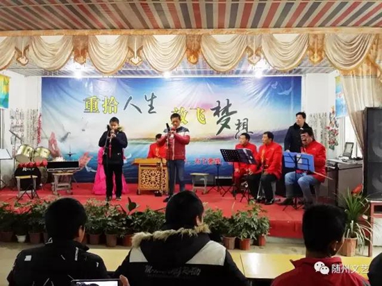 沒辦法,我只好被他拉著去看了曾都區愛心職業培訓學校和隨縣博愛特殊教育學校,觀看了孩子們艱難的表演。是的,他們沒有正常孩子一樣健康的身體和在舞臺上精湛的技藝,但他們直面生活和人生的勇氣令人感動。