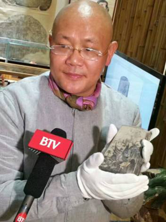 大家觀看了斫云樓藏歷代名硯展及吳笠谷先生制作的新硯,斫云樓主吳笠谷先生還介紹了珍藏的唐代“墨筆山水箕形澄泥硯”,大家紛紛傳看,贊嘆不已,都為唐人的山水畫手法稱奇。