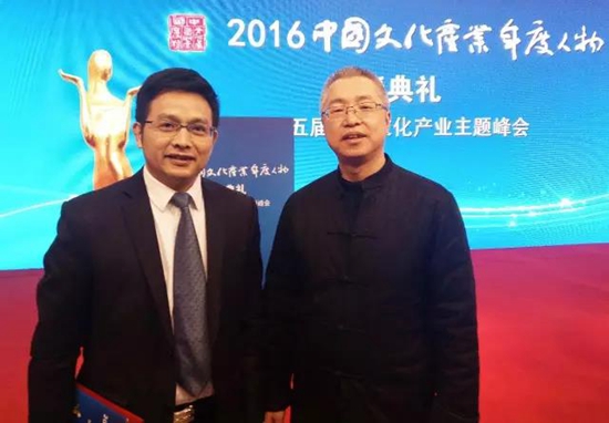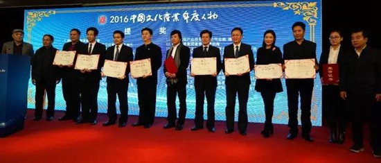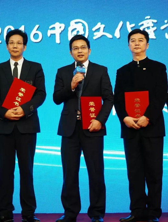 張志兵(中)榮獲“2016中國文化產(chǎn)業(yè)年度人物提名獎(jiǎng)”