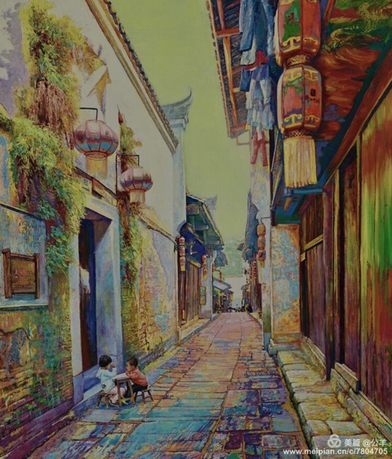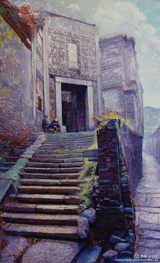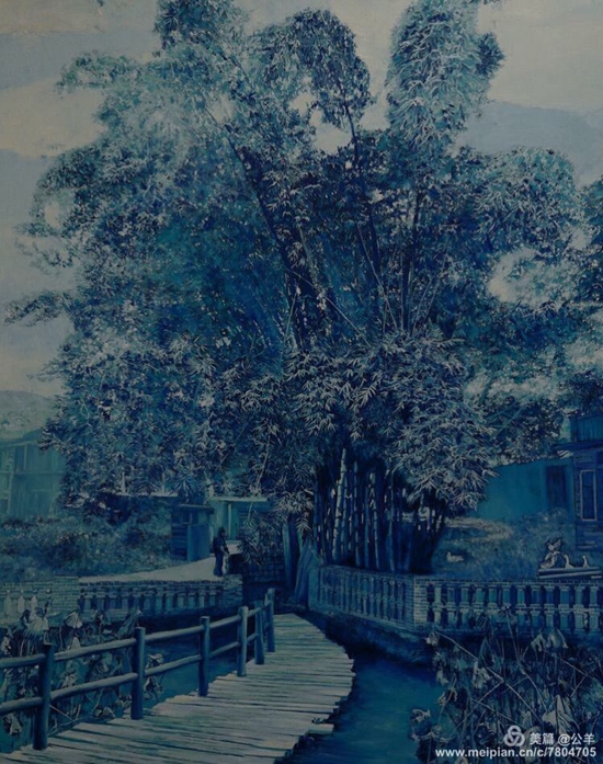 多年來,劉國柱先生以非物質文化遺產的獨特視覺與山岳生態文化的精髓緊密相聯,多次深入湘西,理行雙證、沉潛自適;以傳統青花意象用油畫的藝術表現形式再現濃郁的自然景觀。劉國柱先生是一個有著高度文化自覺的學者,他有著強烈的民族榮譽使命感;有著常人所不具備的對國家自然文化遺產及非物質文化遺產的保護意識!他以獨到精湛的藝術手法描繪出了湘西奇峰的壯美以及古樸的人文景觀,成功地將山岳生態文化和精神文化完美地融合在一起。