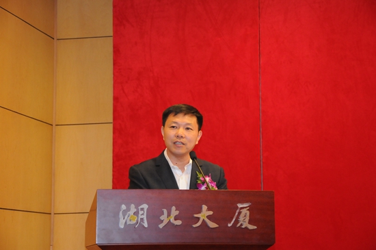 隨州企業代表、中國品牌管理研究中心主席王漢武在商會成立儀式上發言
