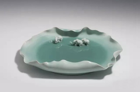 在2016年杭州G20峰會上,一件看似簡單的青瓷作品《春滿江南荷葉洗》被選入西湖廳中陳列。彎曲的荷葉代表和諧,靈動的小魚代表大自然,這樣一件“簡單”的作品隱藏著深邃的寓意:在當代,我們仿效古人的青瓷材料,借力我們祖先“敬畏大自然”的哲學理念,去表達“人與自然和諧生存,體會天地大美”的美好愿望。因此這件作品不僅得到了業內人士的一致稱贊,同時也得到了世界的認可。