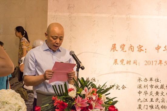 中華炎黃文化研究會硯文化聯合會名譽顧問張黎先生宣布展覽開幕