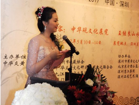 廈門唯遠鋼鐵董事長吳小霞女士主持中華硯文化暨王繼良畫山水畫系列展覽開幕式