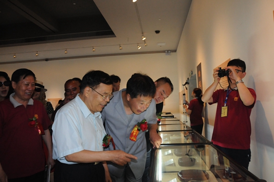 中華炎黃文化研究會硯文化聯合會高級顧問張黎先生,全國政協委員、中華炎黃文化研究會名譽副會長、硯文化聯合會名譽會長劉紅軍先生,著名國畫家王繼良先生等觀看硯文化展覽