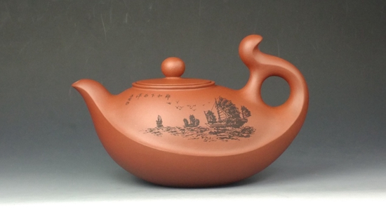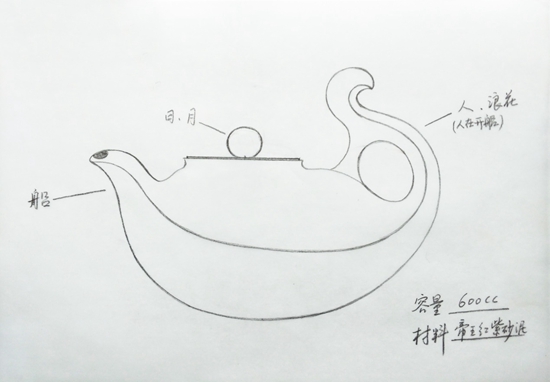 張九齡一句“海上生明月,天涯共此時(shí)”,汪成瓊用紫砂藝術(shù)詮釋對(duì)這首詩(shī)的理解,描寫出千年之前月明星空,波瀾壯闊的海上景象。壺身呈航船造型,壺鈕為日月,提梁為篆書“人”字形,寓意“海上絲綢之路”,人在大海中日夜航行。乘長(zhǎng)風(fēng),駕巨浪,一葉中流任奔放,更描繪出海上絲綢之路商船競(jìng)發(fā)、東西方文明交流融合的繁華。