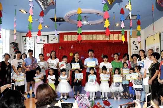 學校組委會通過親子運動會、手工展示會及孩子們的綜合表現,評選出了10位小朋友的爸爸媽媽為“好爸爸、好媽媽”獎項,小朋友們為自己的爸爸媽媽頒發獎狀,王校長和中國國際象棋高級教練李勝利老師為小朋友們頒發繪本故事作為獎勵并合影留念。