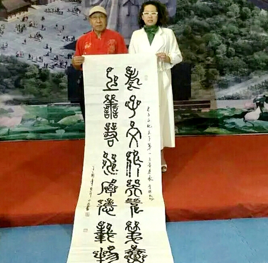 活動(dòng)中,著名書法家趙力志先生(原名趙平安),現(xiàn)場(chǎng)揮毫潑墨,為企業(yè)家書寫了行書作品“平衡有道五行滋養(yǎng)水依生”和鳥蟲篆作品“商道酬信”。為道教老子文化,書寫了八尺鳥蟲篆書法作品,"老子文化,天下第一,上善若水,厚德載物。"商道酬信、海納百川、厚德載物、等作品。將企業(yè)經(jīng)營和老子文化傳播緊緊地系在一起,共同為一帶一路國策增光添彩。