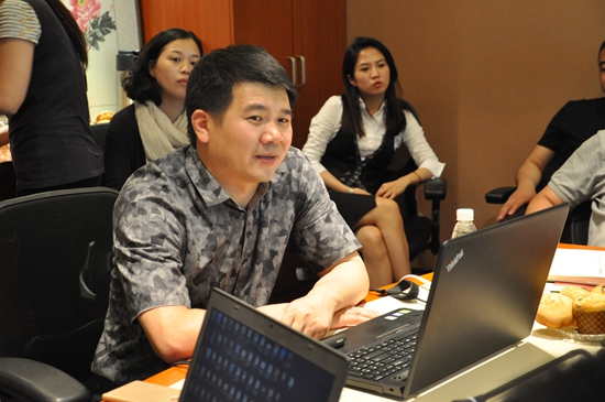 文交聯合副總裁銀志向來到公司學習觀摩的藝術金融博士課程班同學們介紹文交聯合