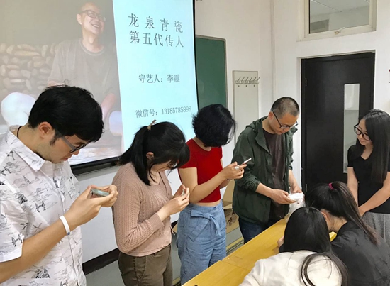 據悉,李震教授為了弘揚青瓷文化和非遺傳承,先后應邀在中國國家圖書館、北京大學、清華大學、人大附中等單位進行過演講和學術講座,反響強烈,這次來到中國人民大學藝術學院為在職碩士研究生授課也正是這位大國工匠不斷踐行"青瓷夢"的人生追求。