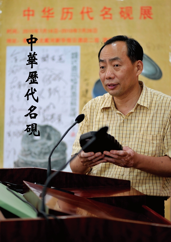 另外,歷史上名硯刻上了某某同觀字樣、某某拜觀字樣較多,古人這樣做是為了增加硯臺價值,是雅聚賞硯品硯,取得共識,我們的硯被名人同觀、拜觀沒有,有,2010年我們在北戴河舉辦硯展時,李嵐清、胡啟立、鄒家華、何魯麗、周鐵農(nóng)、趙化勇等都去觀賞過,有的還拿到手仔細欣賞過,我當時就意識到這是十分難得的機遇,抓住時機拍了多張照片,同時,在他們余興未了之日讓秘書督促首長給題了銘文,這對硯臺對首長都是有益的事情,百年之后可能因硯臺的銘文而讓人們記起這位首長,歷史上官比阮元、高鳳翰、黃易高的多得多,為什么我們現(xiàn)在只記起了阮元、高鳳翰、黃易,因為他們的名字與石永存了,石不爛名永存,其一生的業(yè)績也永存。在北戴河辦展時,我門也舉行了一次雅聚,當時方見塵、劉克唐、胡中泰、陳國源、金彤、海濤、笠谷、得一、同祥、飛鵬、石民等都受邀請參加了這次雅聚,他們的硯臺也同樣受到中央領導的贊賞。大家齊聚夏都其樂融融,把酒臨風之時大家一時興起,共銘了一方方形鹵紋硯,配飾了棉套,得一還在套上題了字,你傳給我,我傳給你,愛不釋手,當同祥回京把它放到網(wǎng)上后,引起了眾多硯友的喜愛和點贊,有人當時就要出幾萬元收藏,我沒有惠讓,我深知這方硯的價值不是錢所能衡量的,它是二十一世紀硯文化學者、硯雕大家雅聚的一個碩果、一個見證、一段故事。再后來,我們響應紅軍會長的號召把硯臺送到了聚硯齋博物館,中央領導、各省書記省長、社會名流觀賞的就更多了,賈慶林、李長春、遲浩田等都觀賞過,這些既有錄像又有照片,有的領導還多次駐足聚精會神地觀看,這些將來都有照片為證,這比硯譜更靠譜,這些都會增加硯臺的人文信息和文化含量,所以,每一個藏硯者都不要保守,不要讓硯秘不示人,要把它送到更高級別的博物館,更高級別的展覽場所,平臺有多大,將來你的硯的名聲就會有多大,華夏民族的人文故事是一代一代薪火相傳的,不要認為與己無關,不可能,說不定那一天因為有高官和名流的贊譽你收藏的這方硯臺就成為了名硯,到那時硯有名,臧者也有名,子孫也得利,藏硯者只有在認識上有這個高度,藏硯生涯才由樂趣,才能和大家其樂融融的共同長久的弘揚硯文化。正是基于這方面的認識,當劉會長發(fā)起成立中華硯文化發(fā)展聯(lián)合會時,我積極參與,當劉會長倡導成立聚硯齋博物館時,我毫無保留的把最好的硯臺拿出來展覽,也正因為我把這批硯拿出來送上聚硯齋這個大舞臺,才讓這批硯的價值逐步被專家認可,并得到了共識,如果不擺上這個大舞臺,沒有被大家認知的過程,有些名硯可能至今不被發(fā)現(xiàn),不被認同,仍流浪于江湖,根本上不了廟堂。因此,每一個藏硯者都要有把藏硯送上聯(lián)合會大舞臺的思想準備和實際行動,為打造中國民間高檔次國家級博物館做出自己的貢獻。