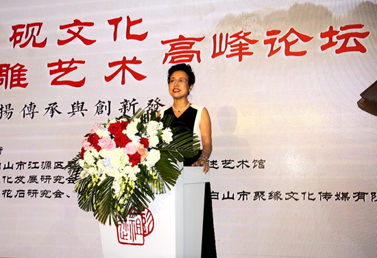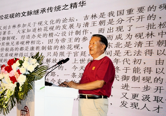 中國工藝美術大師、長春市微刻藝術家協會主席彭祖述先生,中國工藝美術大師、中華炎黃文化研究會硯文化聯合會常務副會長劉克唐,中國工藝美術大師、中華炎黃文化研究會硯文化聯合會專委會顧問王祖偉;中華炎黃文化研究會硯文化聯合會專委會顧問、上海博物館研究員華慈祥,吉林省工藝美術協會副會長王馳濤,吉林省長白山松花石研究會副會長王連春等六位專家,圍繞“松花硯的弘揚傳承與創新發展”的主題發表演講,對弘揚中華硯文化事業和松花硯文化發展,提出了充實的理論和操作性很強的建議,將對松花石硯文化的振興與繁榮,乃至弘揚中華硯文化事業產生深遠影響。