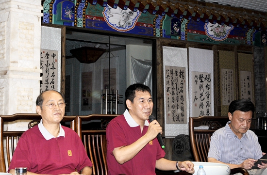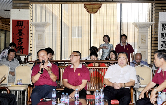 參觀結束后,舉行了“慶八一•憶傳統•喜迎十九大座談會”。孫臨平、陳國源、張國興、高玉家、金彤、張得一、侯建國、董永裁等分別發言,對中華硯文化的傳承、創新與發展提出了意見和建議。劉紅軍會長作總結發言指出,在黨中央、國務院關于大力弘揚中華優秀傳統文化國策下,我們通過硯文化展覽活動,宣傳軍魂、弘揚優秀的民族精神,這就是我們的文化擔當和政治擔當,這也是我們的情懷。我們對人民英雄、革命軍人充滿感情,我們對革命事跡充滿敬意,我們對傳承優秀的傳統文化充滿期待。將繼續推進學習貫徹習近平總書記系列重要講話精神,緊密團結在以習近平同志為核心的黨中央周圍,銘記歷史、不忘初心、繼往開來、振興中華。以優異成績迎接黨的十九大勝利召開。