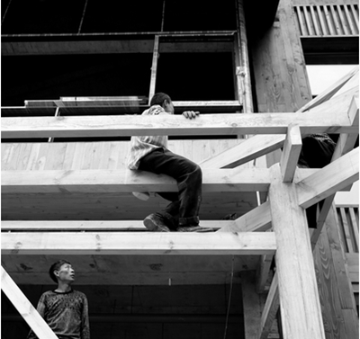 圖3 中國企業家攝影學會趙樂萍(右)、鄭錦偉(中)在拍攝“中國儺城”的核心建筑——“三幺臺”