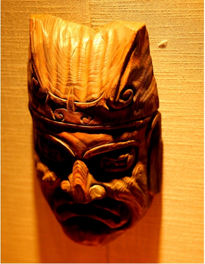 圖1 在“中國儺城”“三幺臺”展出的“儺戲”面具,夸張、粗獷、具有強烈的神秘色彩