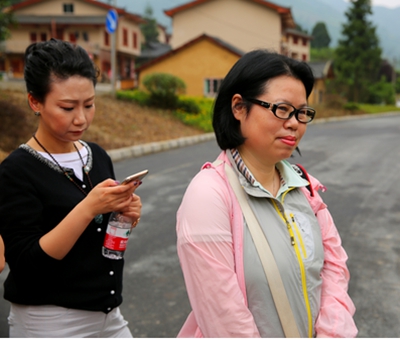 圖8 “中企攝”常務理事鄭蔓莉(右)在“神秘仡佬——探索攝影之旅”考察活動中