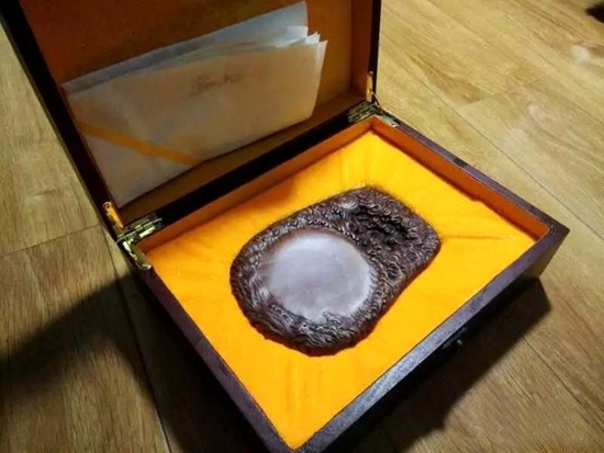 期間山東省政協(xié)常委 東方匯泉集團(tuán)董事局主席 東方君公益基金會(huì)會(huì)長(zhǎng) 中華炎黃文化研究會(huì)硯文化聯(lián)合會(huì)常務(wù)副會(huì)長(zhǎng)董方軍先生贈(zèng)送給比爾、蓋茨先生一方由中華炎黃文化研究會(huì)硯文化聯(lián)合會(huì)會(huì)員,全國(guó)首界中華硯雕師 齊增升雕刻的青州紅絲硯《上善若水》!