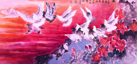 筆墨當隨時代,何秋靜先生是一位善于觀察生活,用畫筆深入社會、記錄生活的藝術家;其作品氣象郁勃,清新自然,筆法靈活多變,水韻墨彰,作品《和平署光》、《和平盛世》氣勢宏大,深沉厚重,作者用文思與詩意贊頌盛世中國蒸蒸日上的繁榮景象,用筆墨描繪億萬人民生活和諧富強、前程似錦的向往之情,反映了作者作為一名藝術教育家用筆墨記錄時代傳遞文化馨香與祖國深沉的愛。