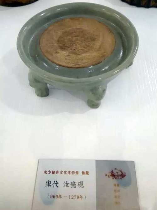 宋代民窯汝窯硯,出自汝窯區(qū)域,釉色“鈞汝不分”,從造型看年代,尚有晚唐五代遺風(fēng)。經(jīng)量子能量測(cè)試儀與標(biāo)的物比對(duì),此硯為南宋。