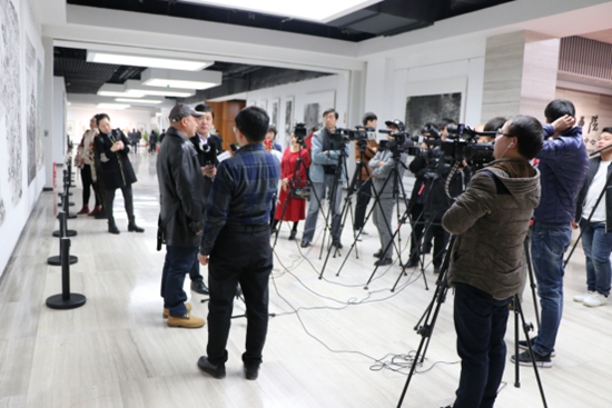 畫家鄭瑰璽畫展現場接受媒體采訪
